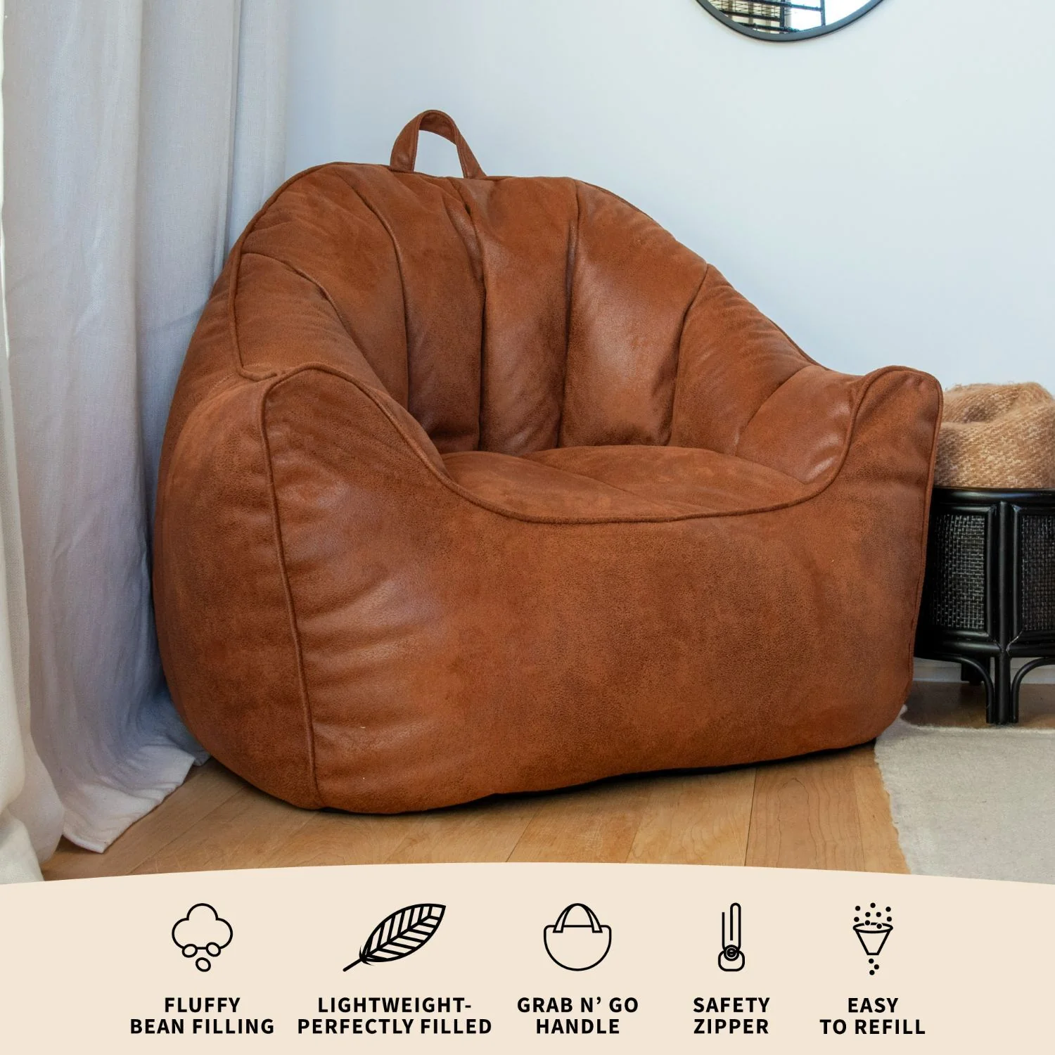 Snuggle up and feel the cozy wrap of the Big Joe Hug. Structured stitching on the back panel ensures you get the support you need for reading, gaming, or taking a snooze. On the move? Take the Hug with you wherever you go with its convenient carrying handle.